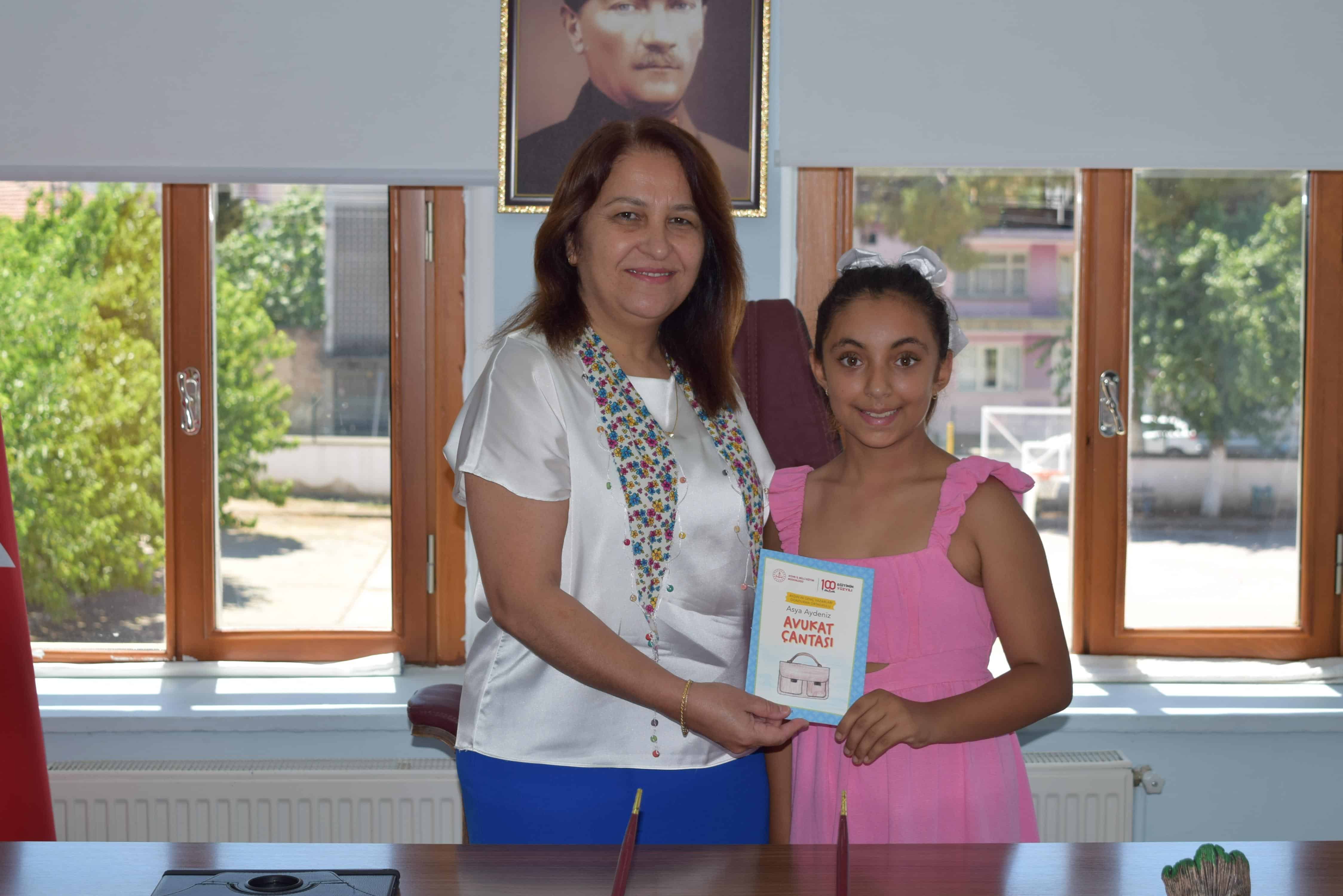 İlköğretim öğrencilerinin hayal gücünü, empati yeteneklerini sanatsal faaliyetlerle güçlendirmesi, Türkiye Yüzyılı Maarif Modeli'nde ana dili eğitimi sürecinde dil becerisini geliştirmesi, kendini değerlendirmesi ve uyarlayabilmesi; sonunda kendi dinleyici, okuyucu, konuşmacı ve yazar kimliğini oluşturması amacına yönelik olarak uygulanan "Aydın'ın Genç Yazarları Projesi" kapsamında Donduran İlkokulu 5. Sınıf öğrencimiz Asya AYDENİZ "Avukat Çantası" adlı hikâye kitabıyla genç yaşta yazın hayatına adım attı. İlçe Millî Eğitim Müdürümüz Sayın Ayşe ACAR genç yazarımızı kabul ve tebrik ederek bu serüvende başarılarının devamını diledi.