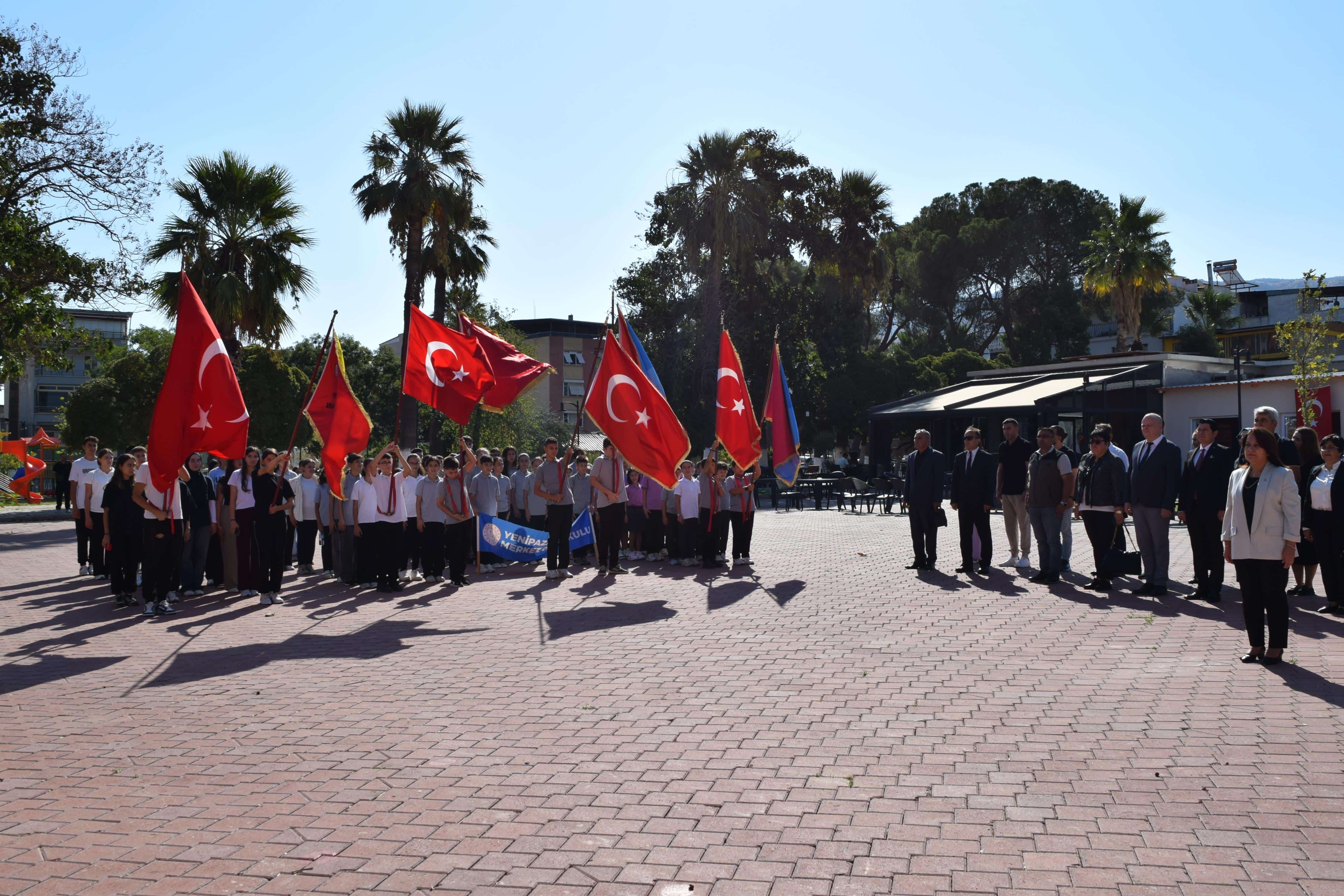 İlköğretim Haftası kapsamında 8 Eylül 2025 Pazartesi günü ilçemiz daire amirleri, mahalle muhtarları, okul/kurum müdürleri, öğretmenler ve öğrencilerin katılımıyla Atatürk Parkı'nda Çelenk Sunma Töreni gerçekleştirildi. Saygı Duruşu ve İstiklâl Marşı'nın okunması ile başlayan tören İlçe Milli Eğitim Müdürü Sayın Ayşe ACAR'ın Atatürk Anıtı'na çelenk sunmasıyla sona erdi. Ardından İlçe Milli Eğitim Müdürümüz Sayın Ayşe ACAR, şube müdürleri ve okul müdürleri ile birlikte ilçe Kaymakamı Sayın Murat KARATAŞ'a ziyarette bulundular.